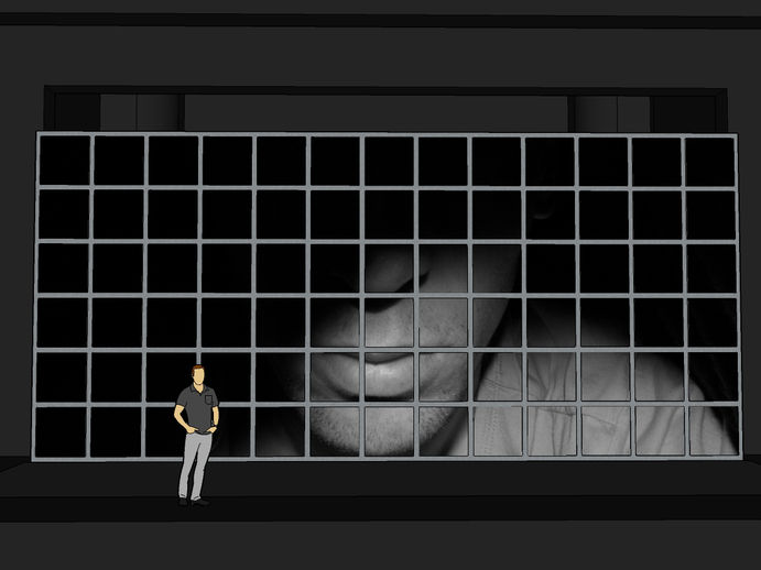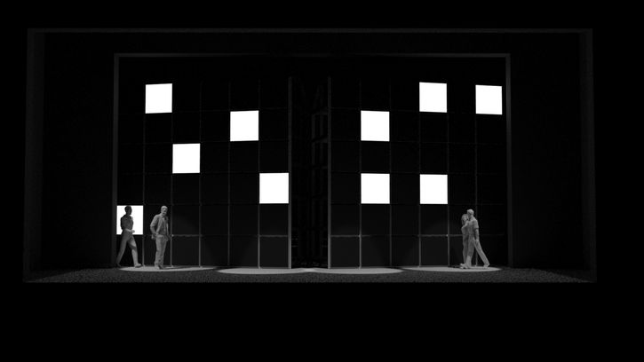 Due to the role media plays in my concept, my goal is to create a world that is in between digital and reality. As a result a large part of my set design exists out of 2 large walls with on each wall 36 LED screens. These will be used to show actual images, but will also be used as a light source. This way parts of the set can be turned "on or off". It also gives the possibility to make the actors appear as silhouettes on stage, which could be beneficial to people like Jago.